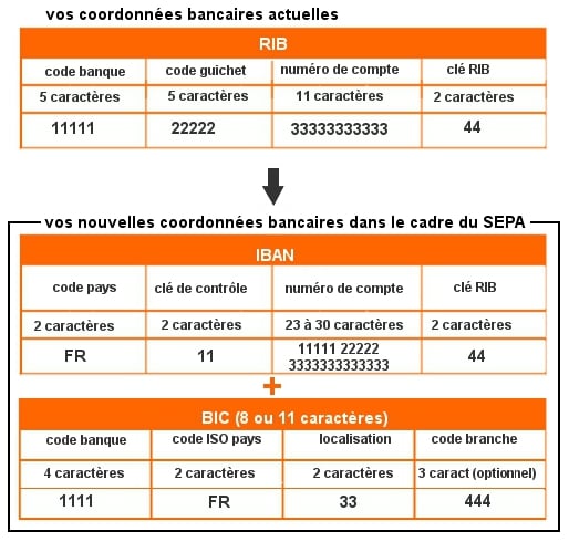 Les coordonnées bancaires du compte sur lequel est effectué le prélèvement qui figureront sur le mandat de prélèvement SEPA seront au format international BIC + IBAN, au lieu du format français RIB.