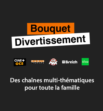 Remise de 5€/mois par plateforme, cumulable, sur Bouquet Divertissement, Disney+, Paramount+ en cas de souscription d'une offre Livebox Fibre Plus, avec décodeur compatible. Souscription de la (des) plateforme(s) en plus auprès d'Orange dans un délai de 3 mois suivants la mise en service et activation du compte de la plateforme. Liste des plateformes au 09/10/2025 susceptible d'évolution. Détails et tarifs sur orange.re. Perte de la remise en cas de résiliation. Uniquement pour les offres Livebox Fibre Plus souscrites à partir du 09/10/2025.