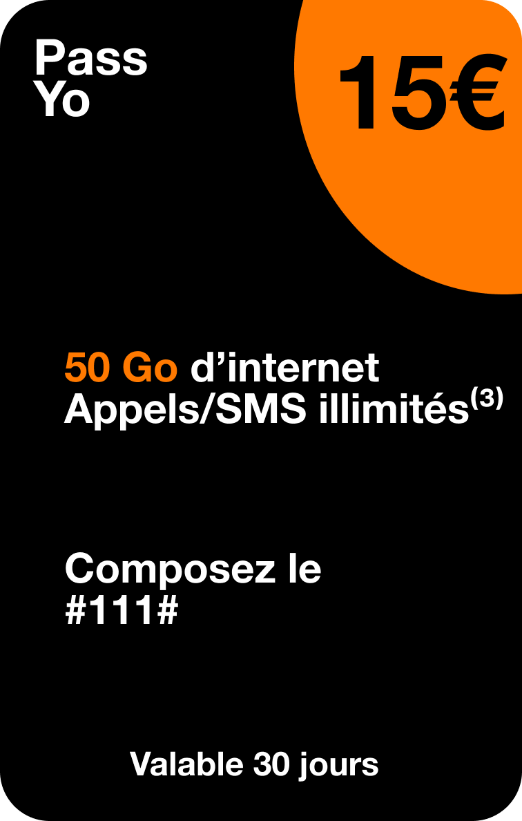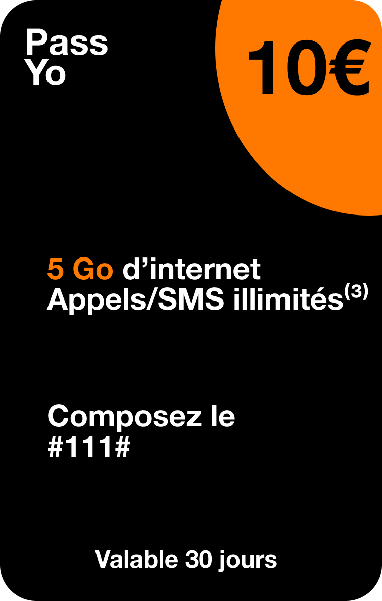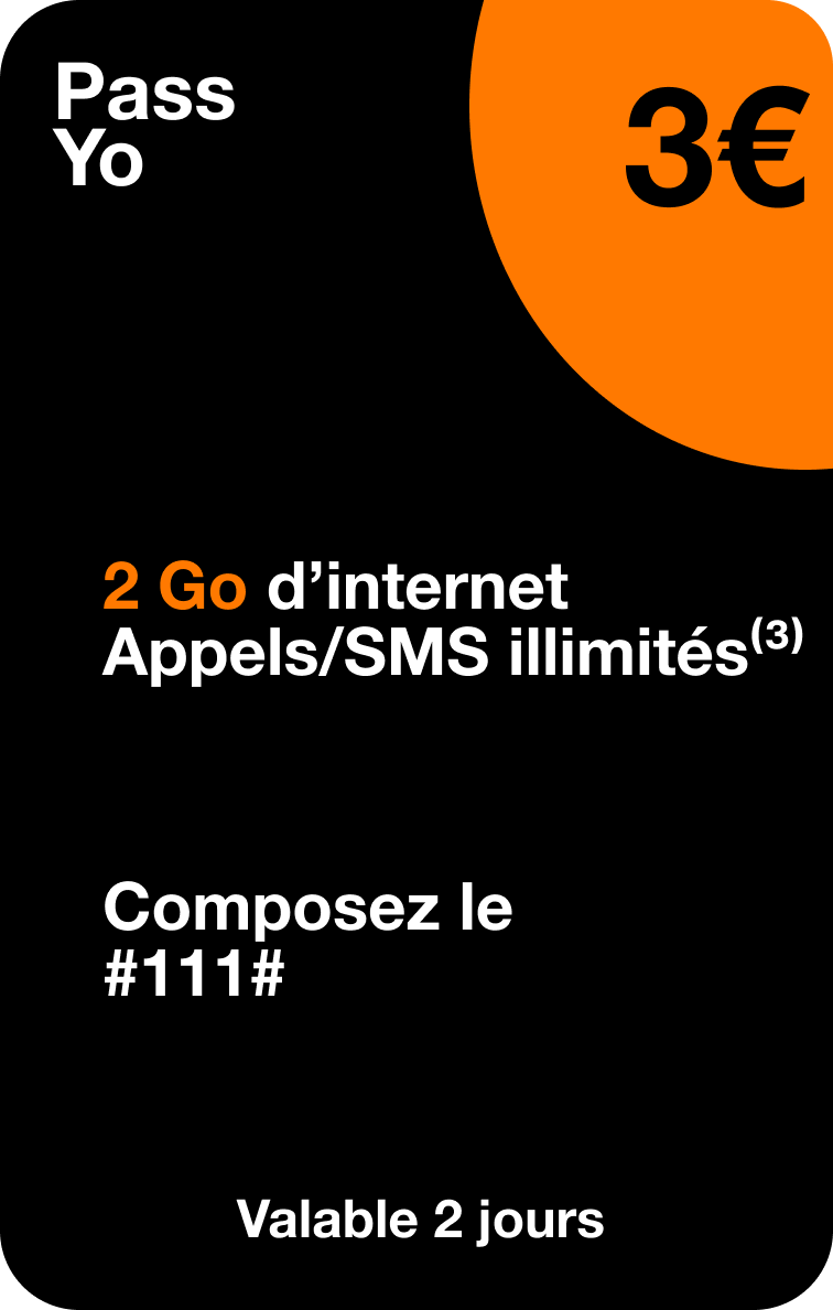 (3) Appels et SMS illimités valables pendant la durée de validité de la recharge ou du Pass, sous réserve d’avoir un crédit minimum de 0,10€. Appels illimités depuis Mayotte vers Mayotte, Réunion ou Métropole, hors n° spéciaux, n° surtaxés et n° courts et dans la limite de 1h45 par appel. SMS illimités depuis Mayotte vers Mayotte et Réunion, dans la limite de 99 correspondants différents par mois, hors SMS surtaxés et n° courts.