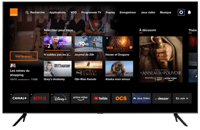 Le fonctionnement du décodeur TV d’Orange est simple à comprendre. Connecté à votre Livebox (en Ethernet ou en Wifi), il se sert d’Internet pour accéder à vos programmes. Vous pouvez changer de chaîne ou naviguer entre les différents services de SVOD grâce à votre télécommande.